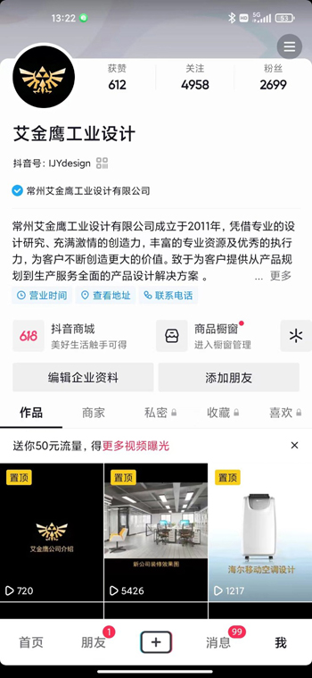 艾金鹰官方抖音号上线啦,欢迎小伙伴们围观,我们将一如既往的为客户提供优质、高效、富有创造力的专业服务。